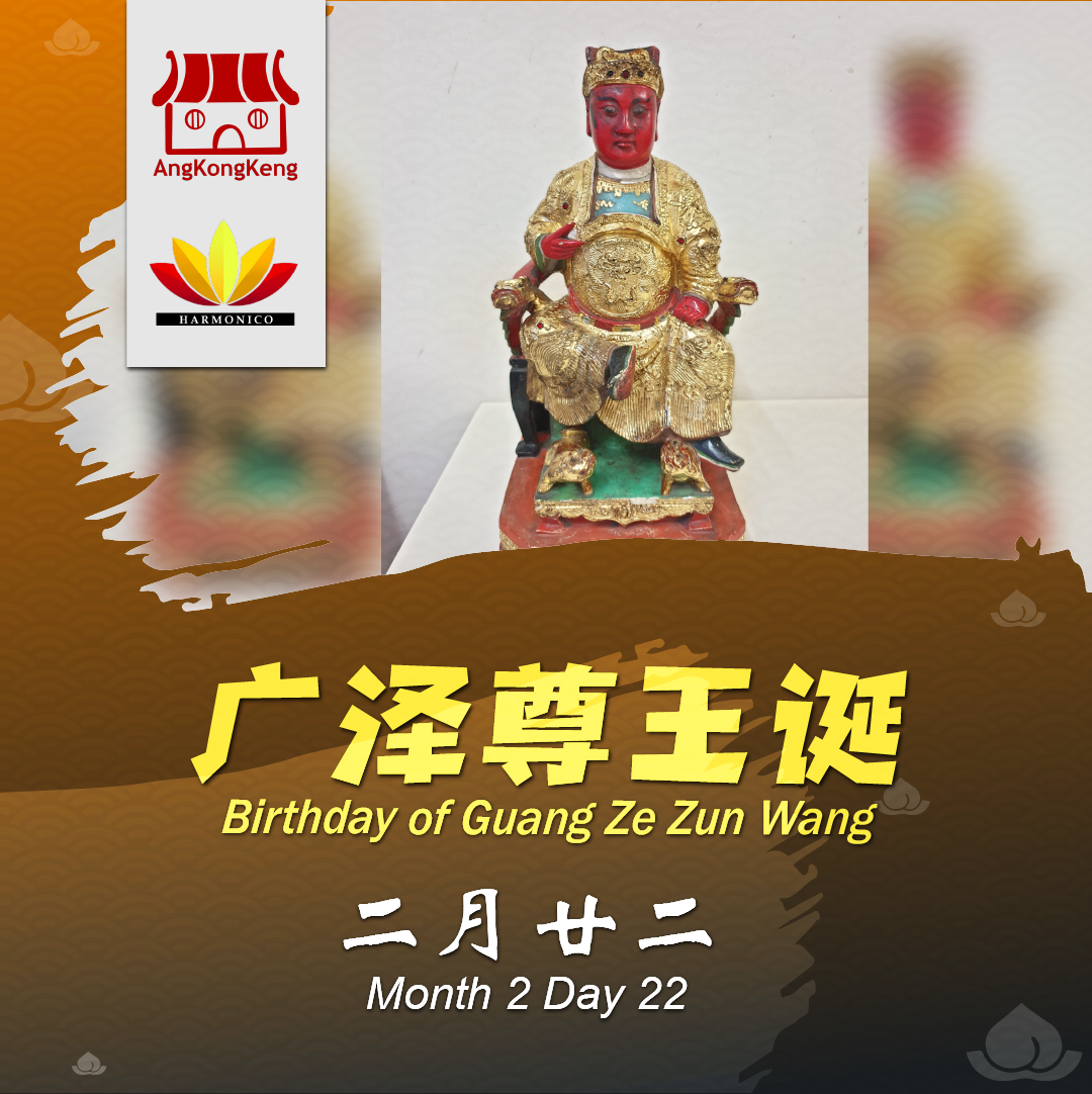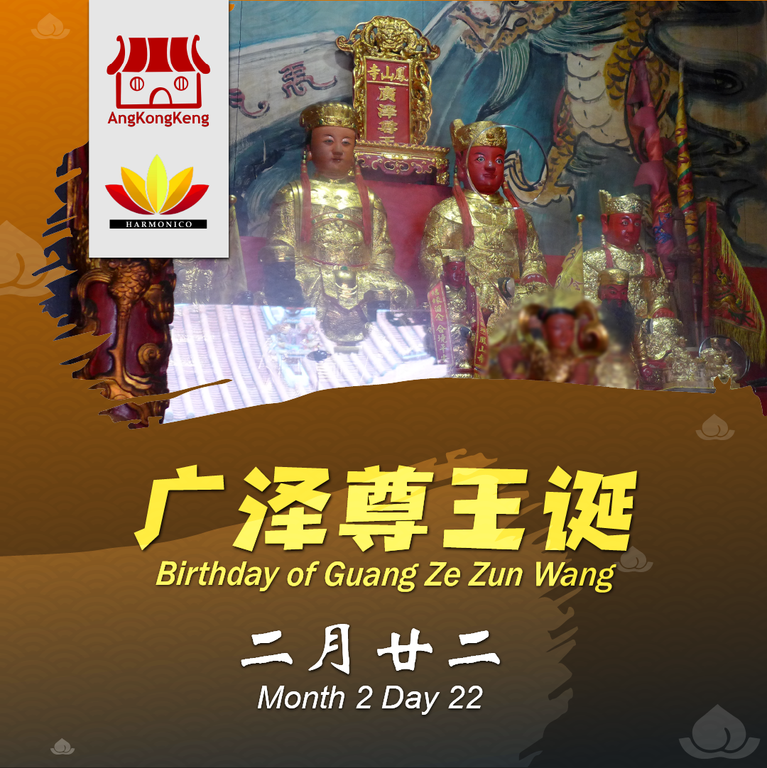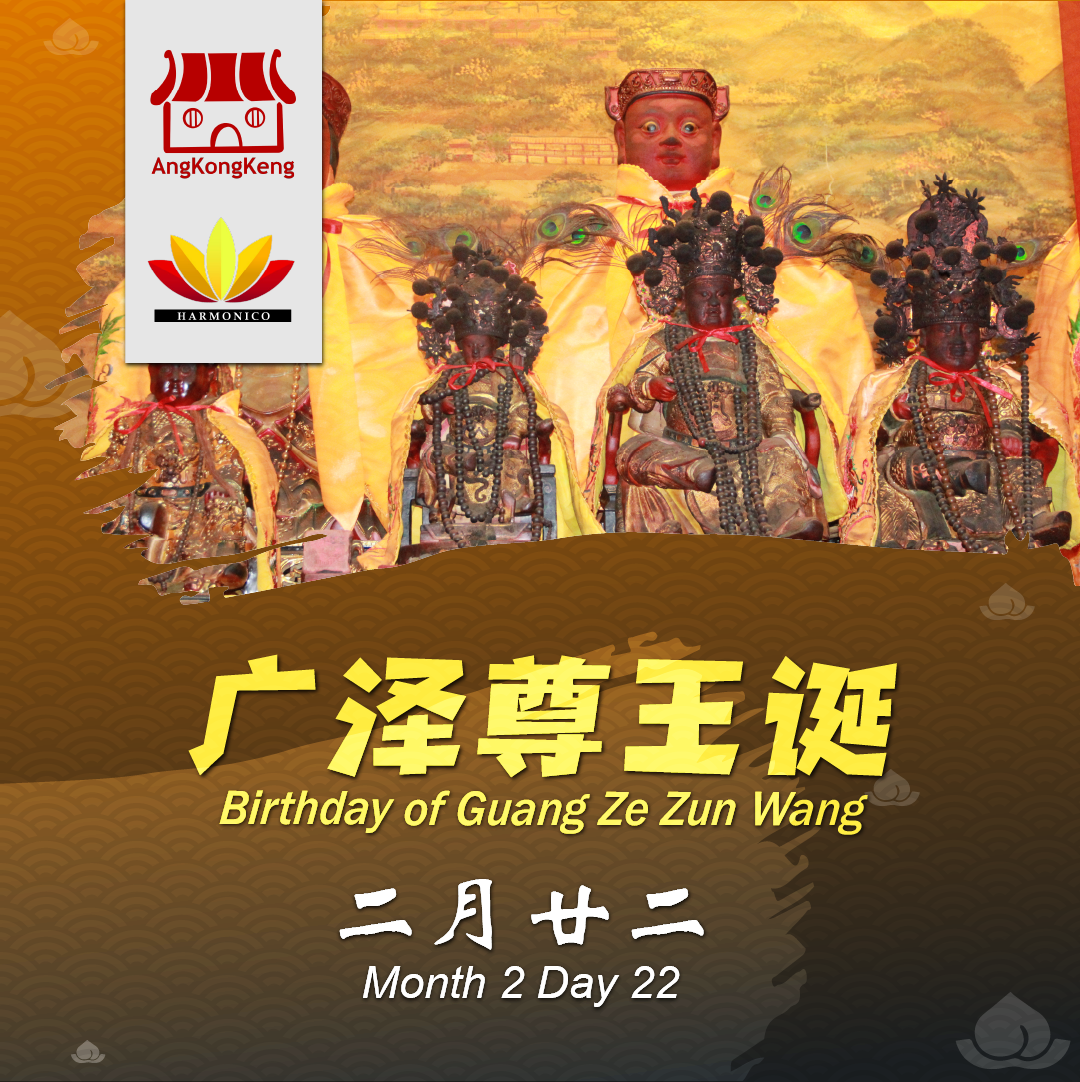 There are two feast days of Guang Ze Zun Wang every year: the 22nd of the 2nd lunar month and the 22nd of the 8th lunar month.