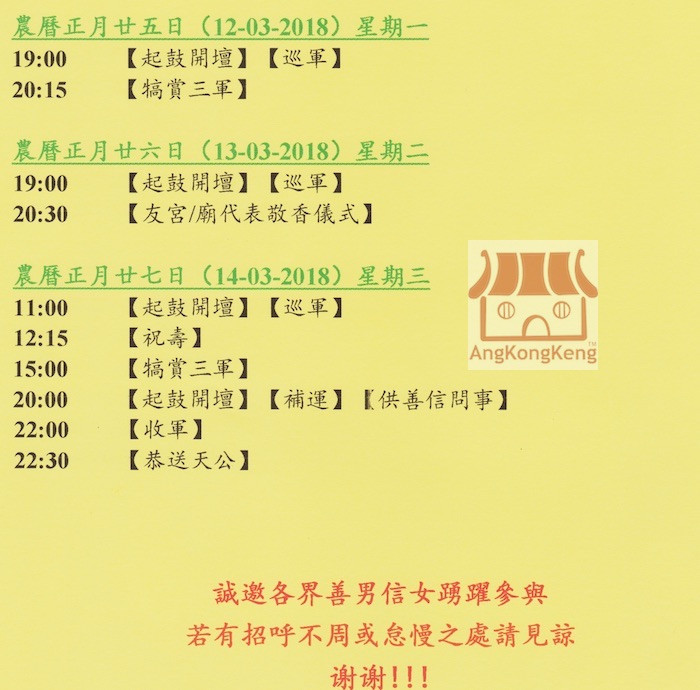 时间:2018年3月10日(农历正月廿三),星期六,下午3时15分开始众神出巡游境