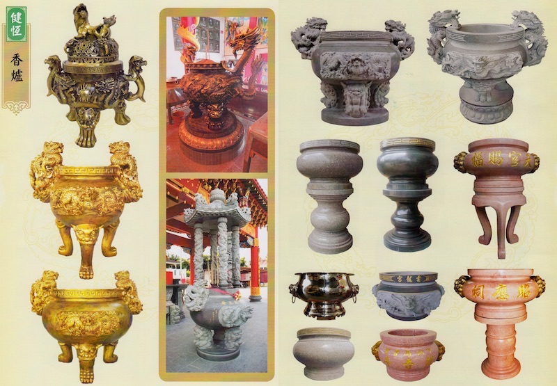 Ceramic 彩瓷艺术品、Imported Chinese Glazed Tiles 进口中国琉璃瓦、Temple Construction Decoration 庙宇工程装潢、All Kinds of Carvings 各类雕刻品、Wood & Stone Carving 木石刻品