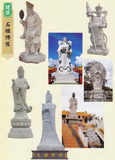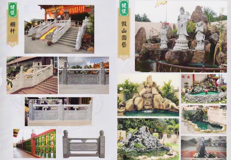 健恒艺术工程有限公司自成立以来,承接无数之寺庙设计及装璜, 除了参与旧庙局部之施工,并著眼於寺庙整体设计、龙凤雕塑、石雕、木 雕、铜雕、各式水泥浮雕、假山园艺、玻璃纤维雕塑品暨代理中国广州琉璃 瓦等中华传统艺术为一体的专业化公司。健恒艺术工程让各庙宇理事会省去层层的困扰及浪费成本的开支,全程包办寺庙的一切装璜,皆获得庙宇理事会的肯定与赞赏。