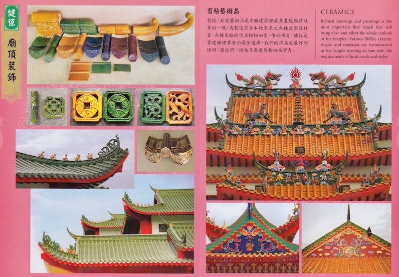 剪粘/彩瓷艺术品是寺庙建筑里最具画龙点睛效果的一环,为制造符合本地需求之各种造型及材质, 各种鸟兽的作品栩栩如生,唯妙唯肖。